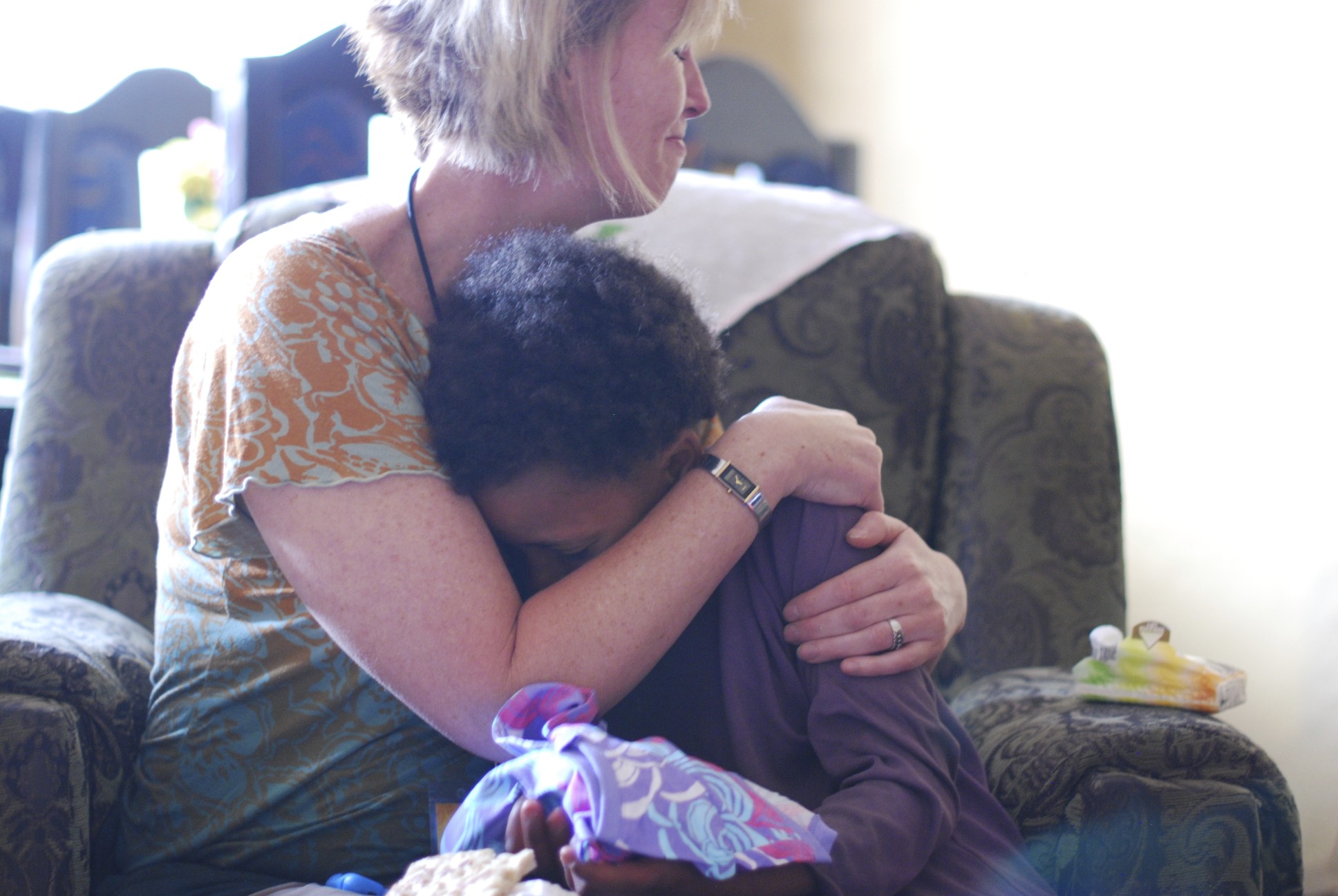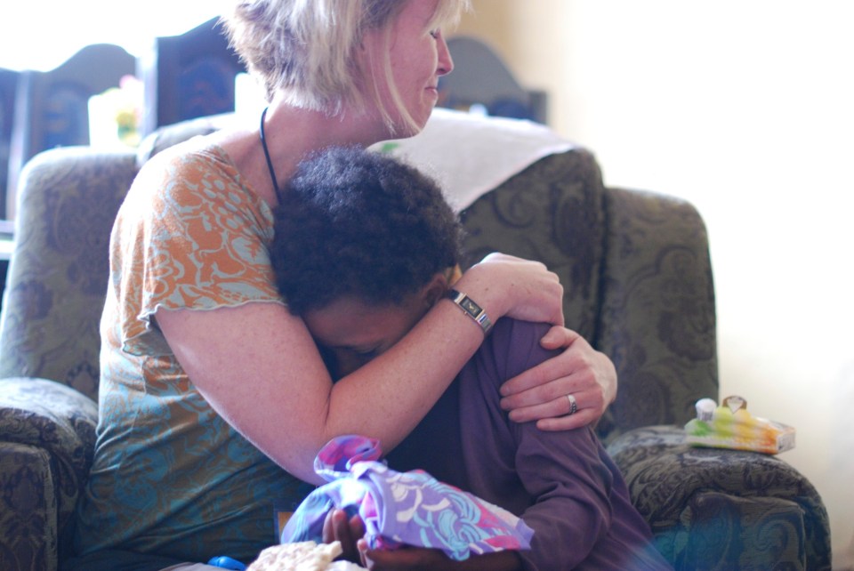I asked her to come and be next to me; she came over and curled up underneath my arms. I then prayed over her. As I prayed, she laid her head down into my lap and I knew that this little girl needed a mommy. I could not longer hold it together.