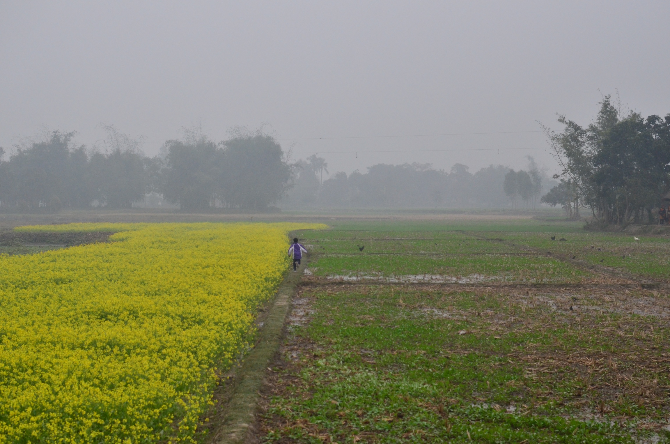 Surrounded by lush fields, I was struck by the beauty in this place. A cold front from the Himalayas had come in, so it was freezing.