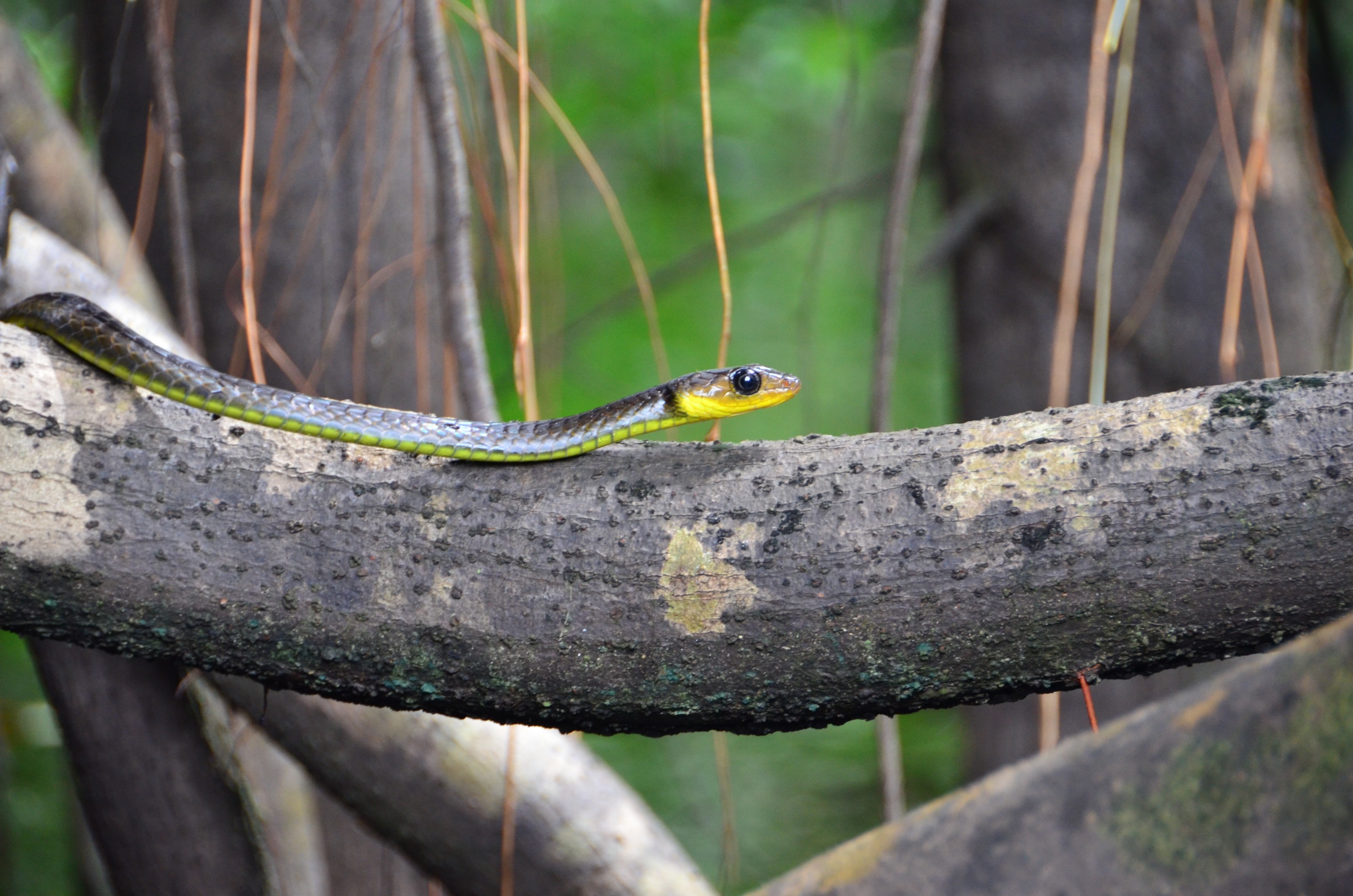 I watched in terror as I sat in the back of the boat, while our guide in the front of the boat had a “come to Jesus moment” with the snake. The guide won, and with reassurance, he said, “Don’t worry, it is not poisonous.”
