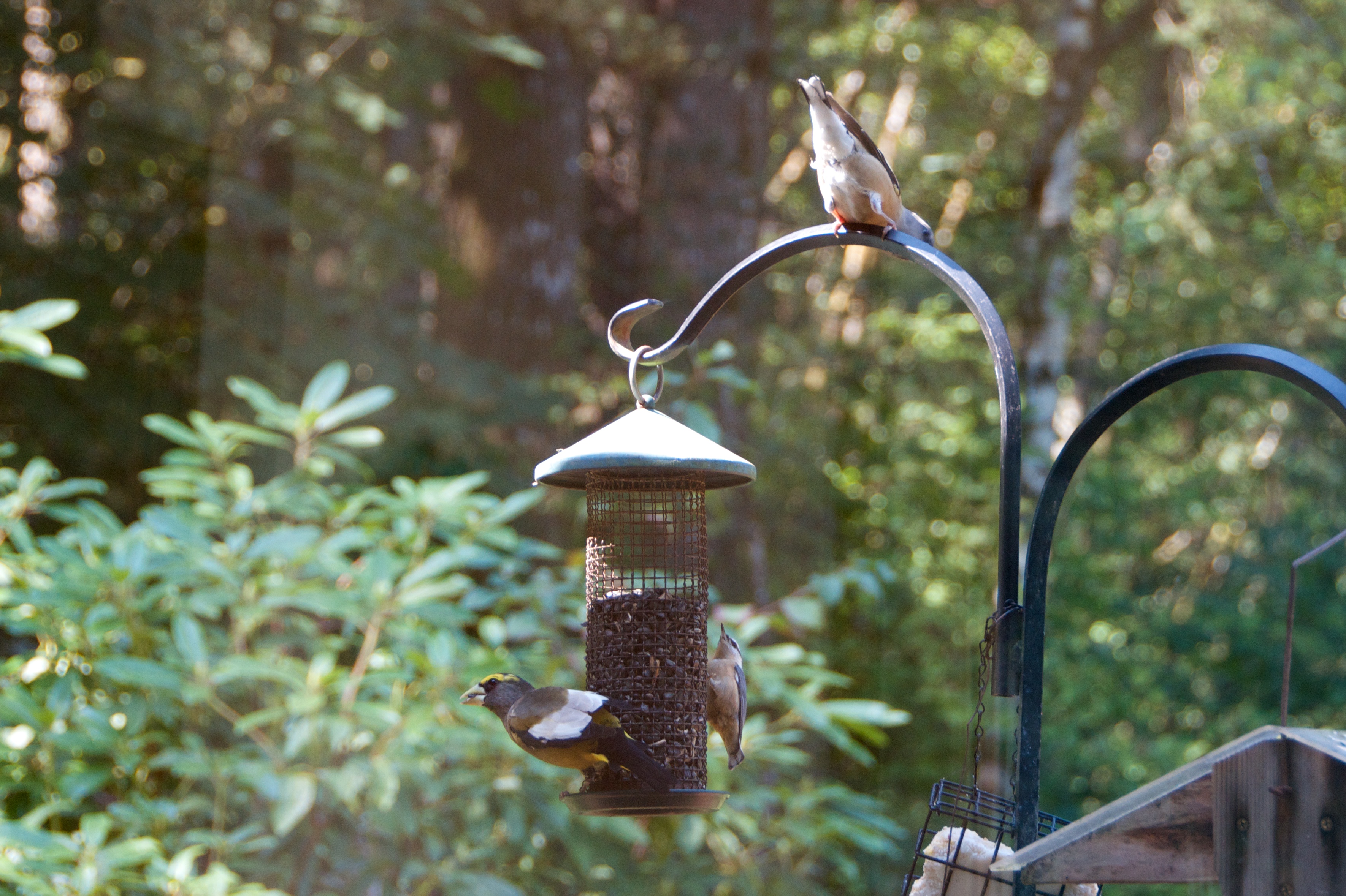 There are birds everywhere! If you suffer from Ornithophobia, you probably should avoid our house. All day, I watch the birds fly in, and about three times a day, they hit a window somewhere. I call these the Kamikaze birds.